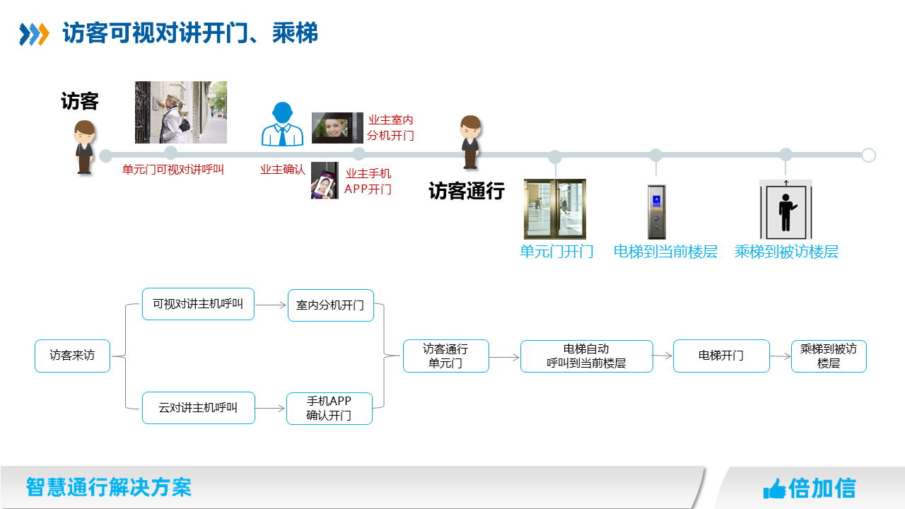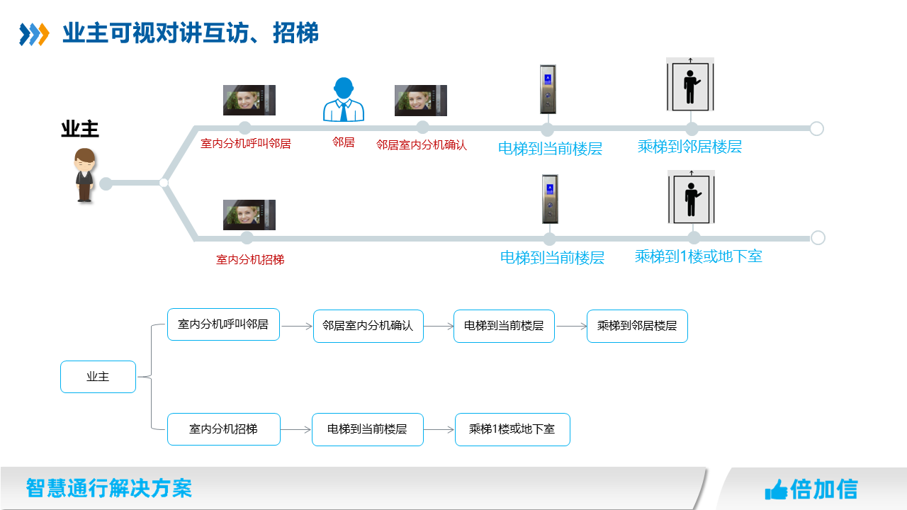 5、住宅項(xiàng)目訪客可在可視對(duì)講呼叫業(yè)主,實(shí)現(xiàn)呼梯聯(lián)動(dòng)招梯和乘梯;