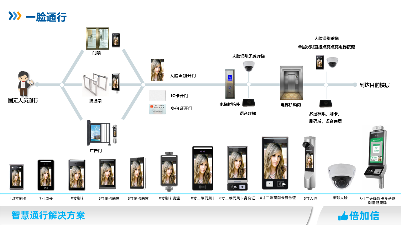 1、人臉授權后可通行門禁、梯控、閘機等設備;
