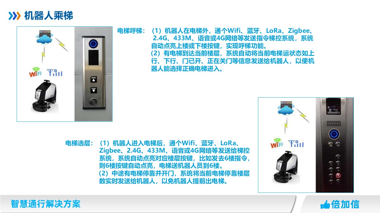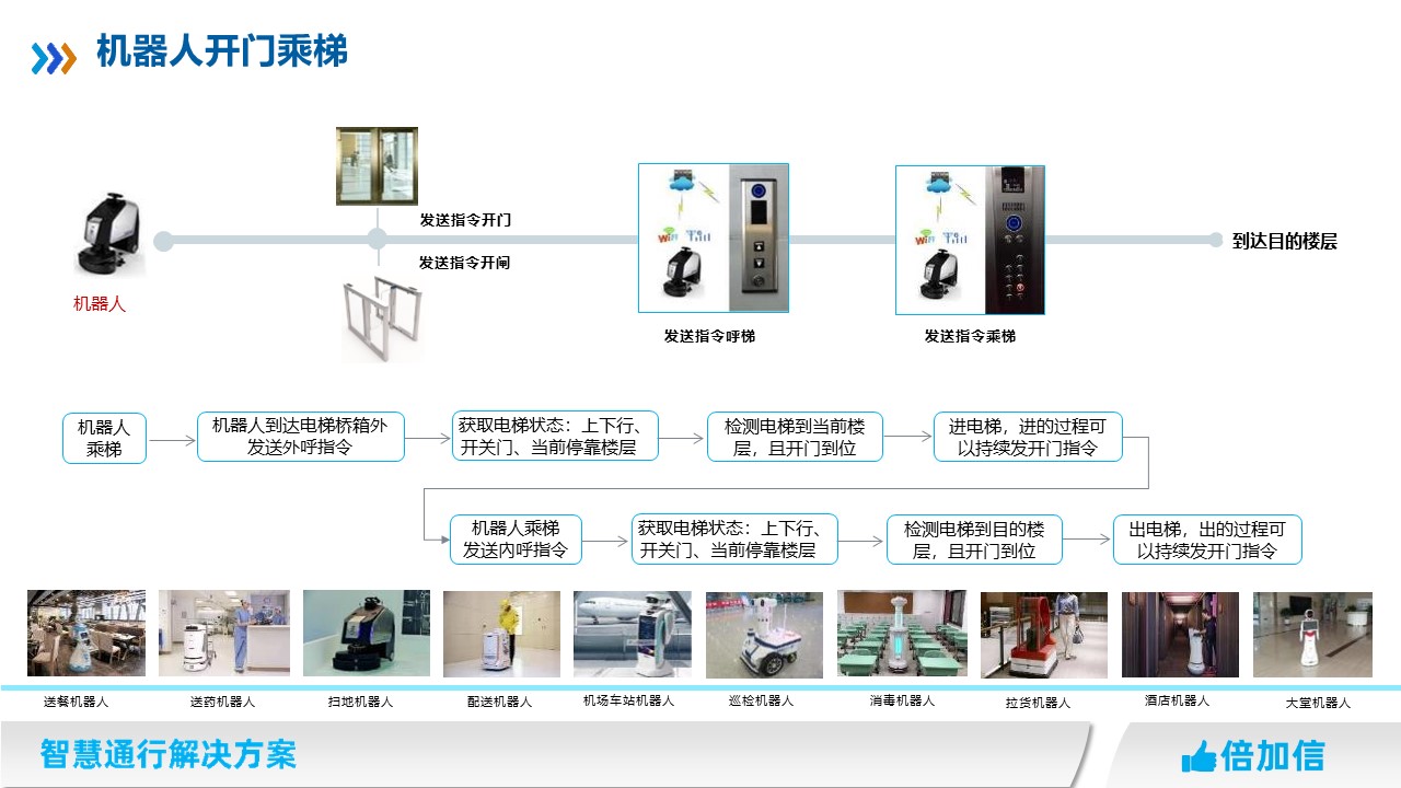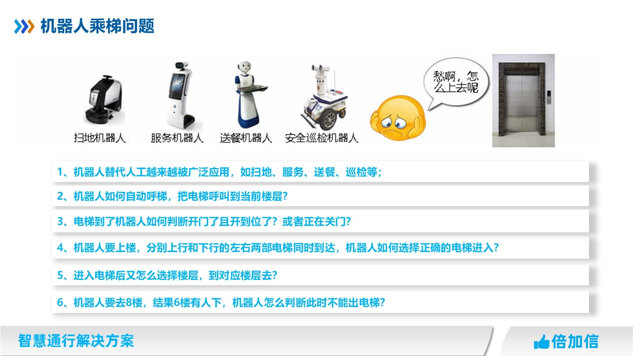 隨著科技日新月異的發展,商用機器人越來越普及,如酒店機器人、掃地機器人、消毒機器人、送餐機器人、包裹派送機器人、大堂服務機器人、巡邏機器人等等,但普遍存在比如自動開門、過通道閘、自助呼梯和乘梯等問題。